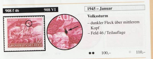 MiNr. 908 postfrisch, Plattenfehler VI (f46): dunkler Strich über mittleren Kopf