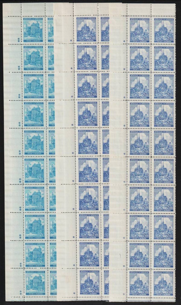 Böhmen & Mähren, B&M MiNr. 40, 41, 68-72 a+b postfrisch ** komplette Bogenseitenränder