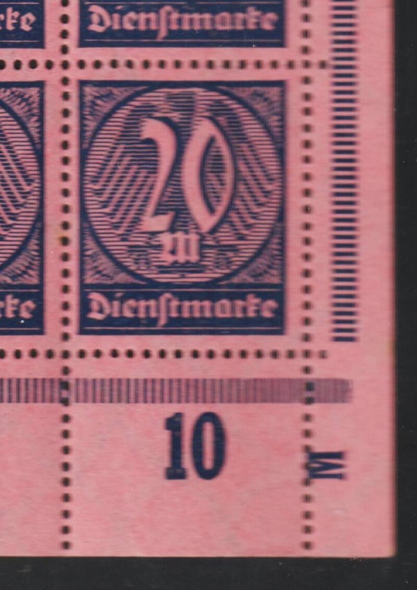 MiNr. D 72 postfrischer Bogen, Platte 3, Druckerzeichen M