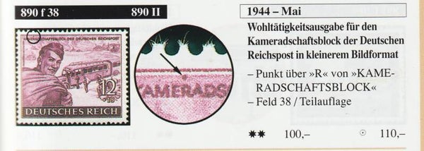 MiNr. 890 gestempelt, Plattenfehler II (f38): Punkt über R in KAMERADSCHAFT