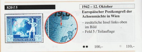 MiNr. 820 postfrisch Plattenfehler f5: zusätzliche Insel
