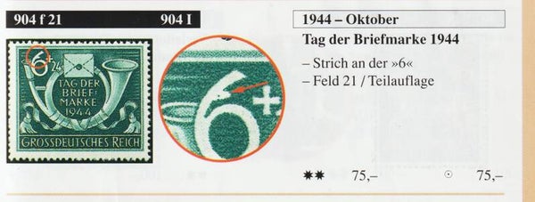 MiNr. 904 gestempelt, Plattenfehler I (f21): Haken an der 6