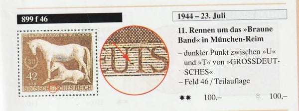 MiNr. 899 postfrisch, Plattenfehler f46: dunkler Fleck zwischen U und T von DEUTSCHES, Bogenecke ndgz