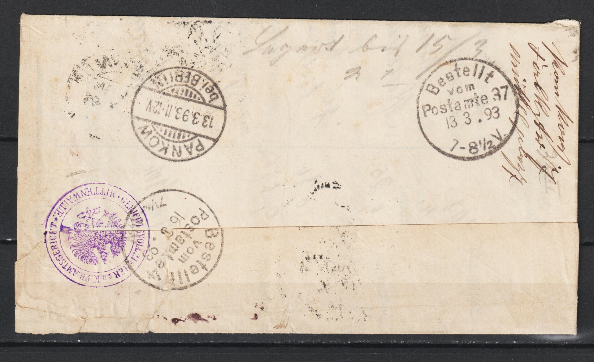 3x MiNr. 47 auf R-Brief vom 12.3.1893