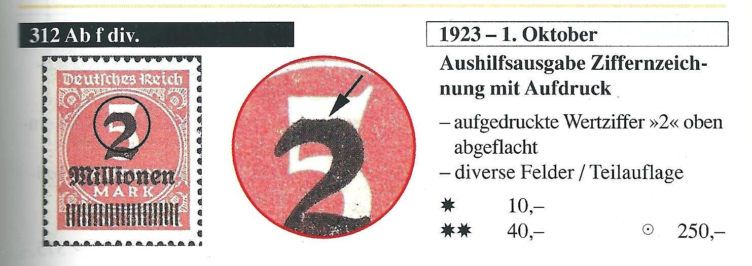 MiNr. 312 postfrisch, Abart: Kopf der Wertziffer 2 oben abgeschnitten