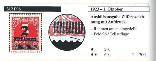 MiNr. 312 postfrisch, Abart f 96