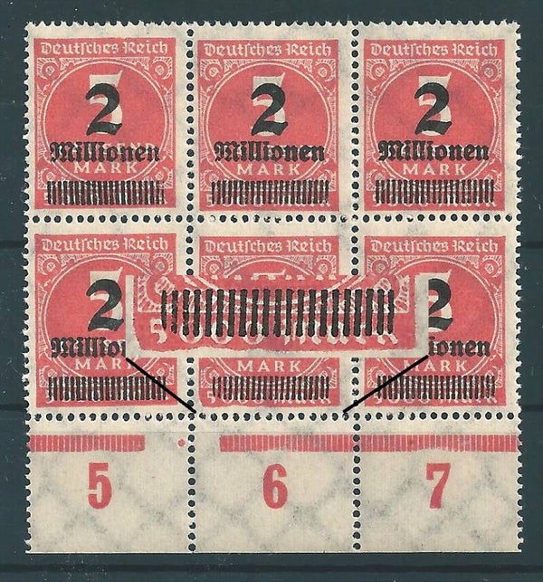 MiNr. 312 postfrisch, Plattenfehler f 96: Rahmen unten stark eingedellt - Feld 96, Teilauflage Platte 6-6