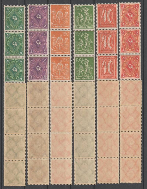 MiNr. 159, 160, 162, 163, 165, 182, 187, 189, 191, 195, 193 postfrische 11er-Streifen, Katalogpreis: 195,00 €
