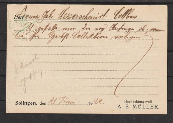 MiNr. 198 auf portogerechter Postkarte mit Firmenzudruck im Fernverker vom 21.6.22