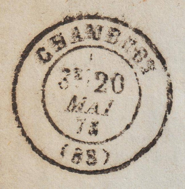 MiNr. 19 im waager. Dreierstreifen auf PD Brief von Benfeld im Elsass nach Chambery Frankreich vom 18.5 73