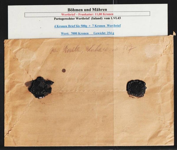 B&M portogerechter Wertbrief vom 1.VI.43 nach Taborska