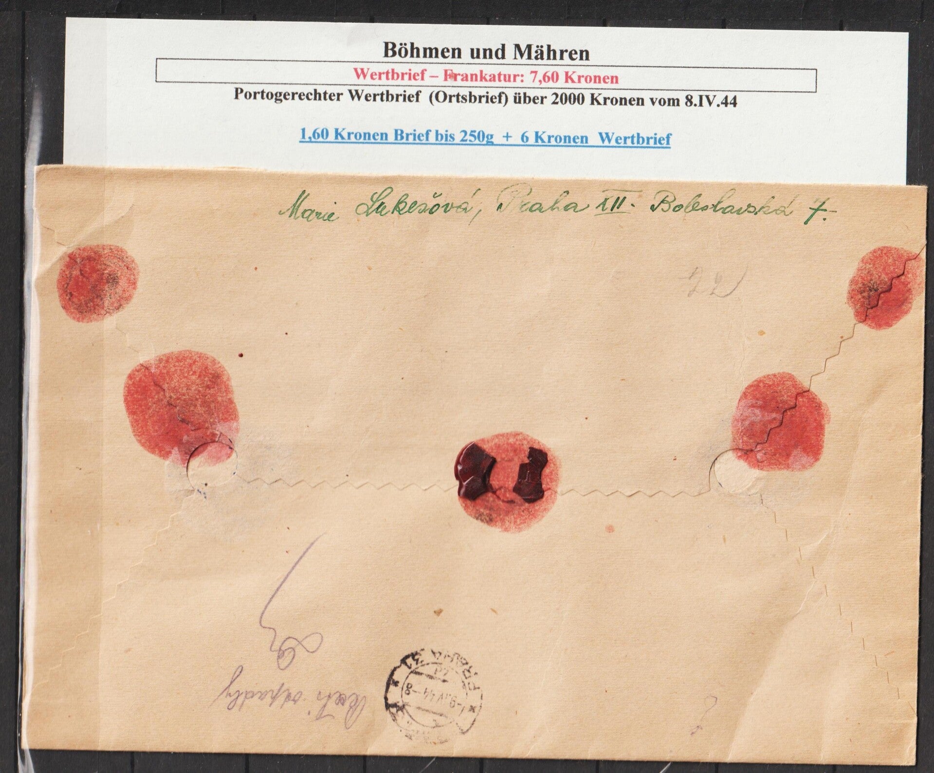 Böhmen & Mähren MiNr. 105, 94 auf portogerechten Wertbrief im Ortsverkehr über 2000,- Kronen