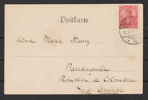 MiNr. 56 portogerechte Einzelfrankatur auf seltenerer Ansichtskarte von BERLIN nach KOLUMBIEN 11.5.01