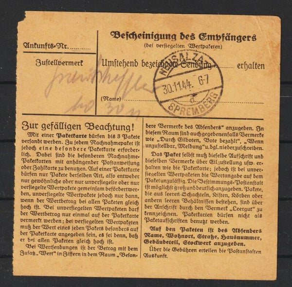 MiNr. 797 Paketkarte, SEESTADTL - NEUSALZA