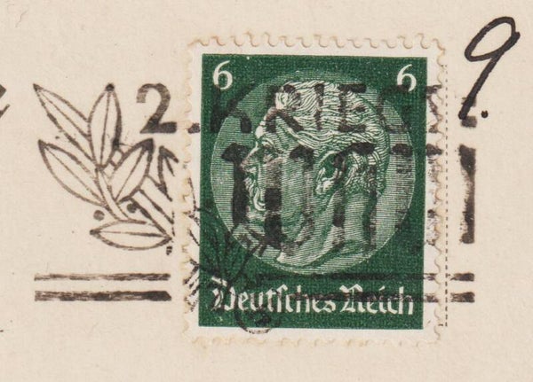 Postkarte von Schwerin nach Stettin, Marke entwertet: "2 Kriegs WHW" und Stempel: Französiche reformierte Gemeinde Stettin, Deutsch reformierte Gemeinde Stettin