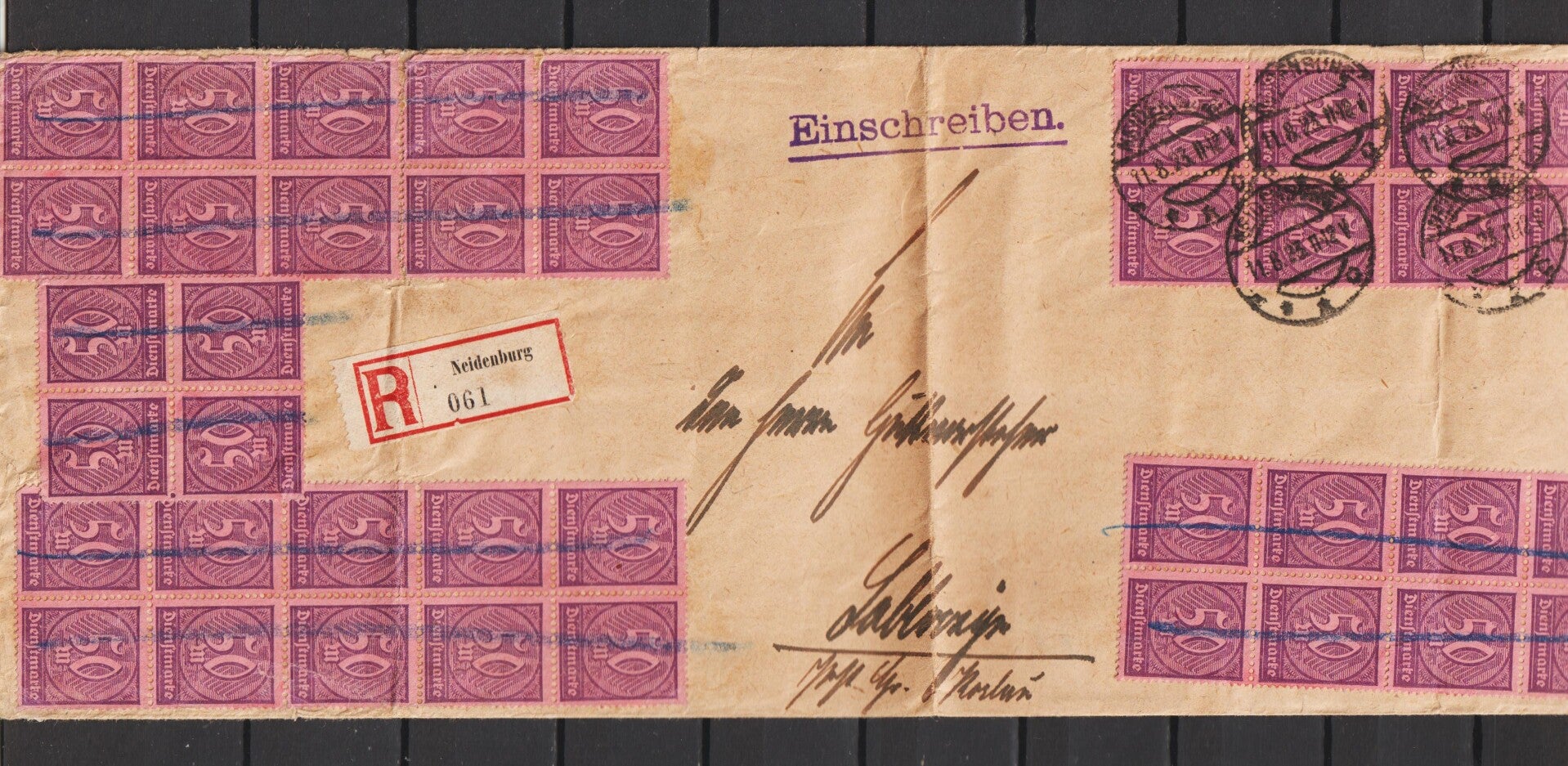 MiNr. D 73 (44x) auf portogerechten R-Dienstbrief 11.8.23 (0898)