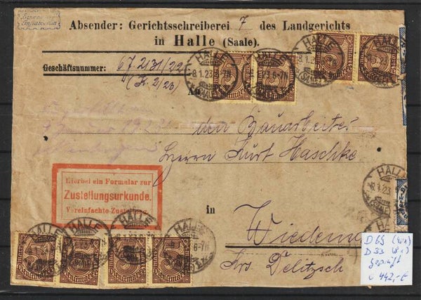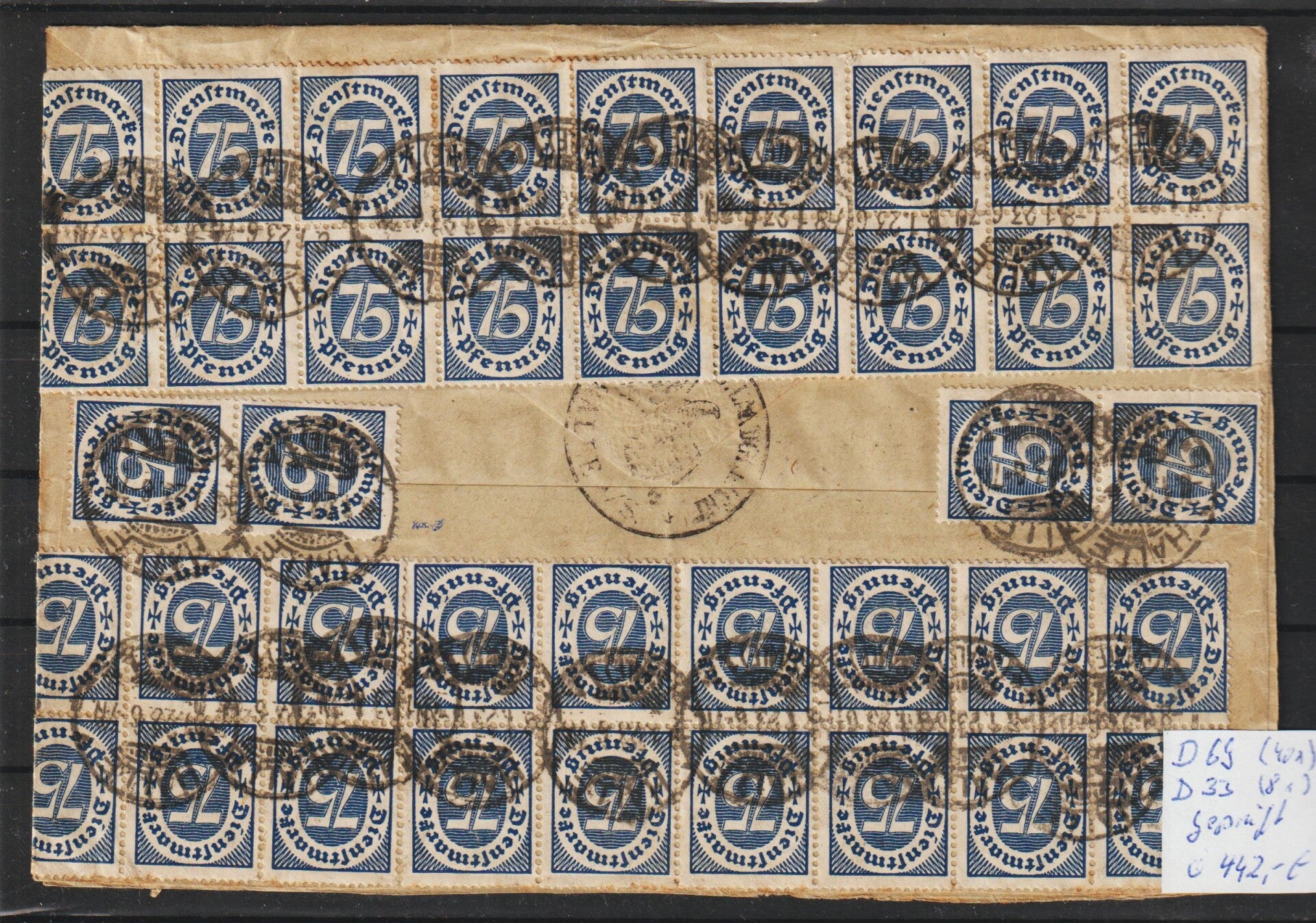 MiNr. D 69 (40x), D 33 (8x) auf Dienstbrief vom 8.1.23, geprüft, Katalogpreis: 440,00 € seltener Beleg