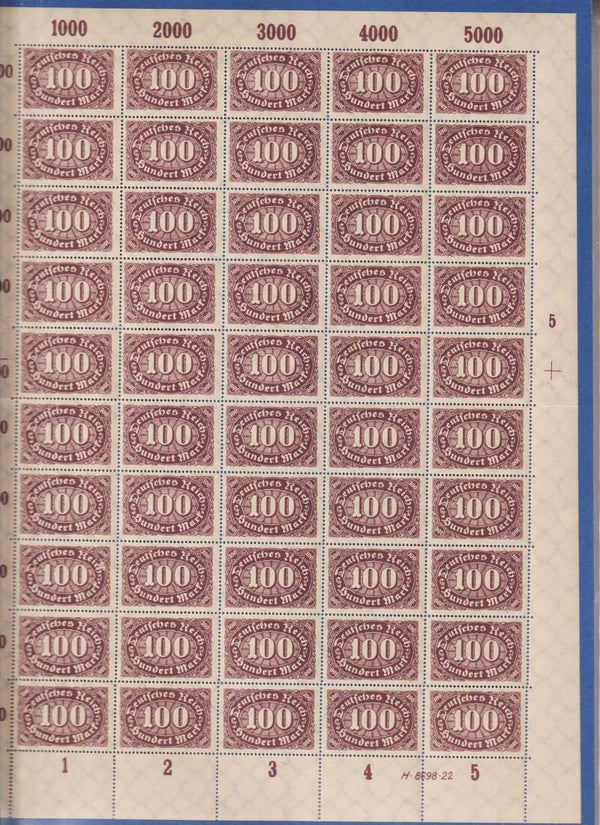 MiNr. 247 postfrischer Bogen, HAN H 8698.22 Platte 5, seltener Plattenfehler f12/III