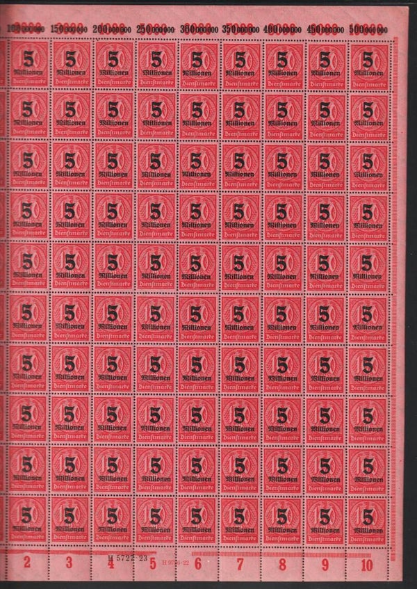 MiNr. D 98 postfrischer Bogen, Platte 1, Druckerzeichen Anlage