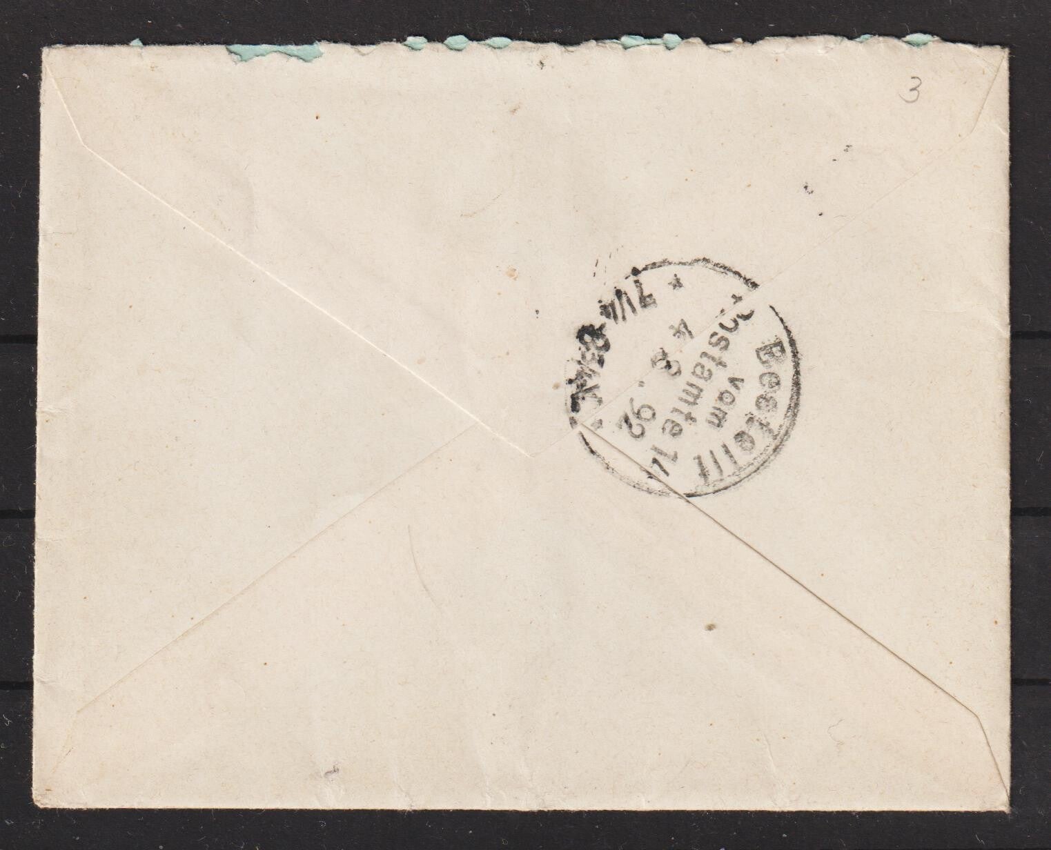 MiNr. 47 auf Brief von Mirau nach Berlin mit markanten Plattenfehler: großer Rahmenbruch an der linken Seite
