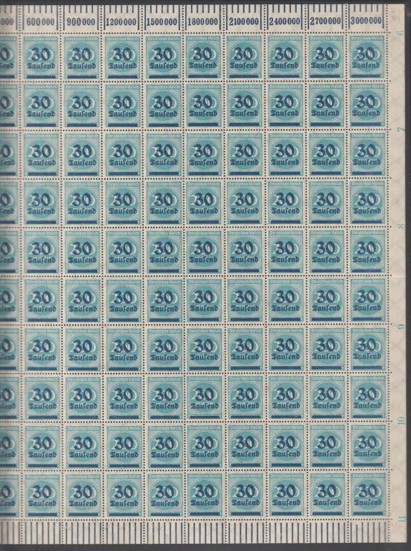 MiNr. 285 postfrischer Bogen, verschiedene Abarten, gefaltet Katalogpreis nur der Oberränder: 25,00 €