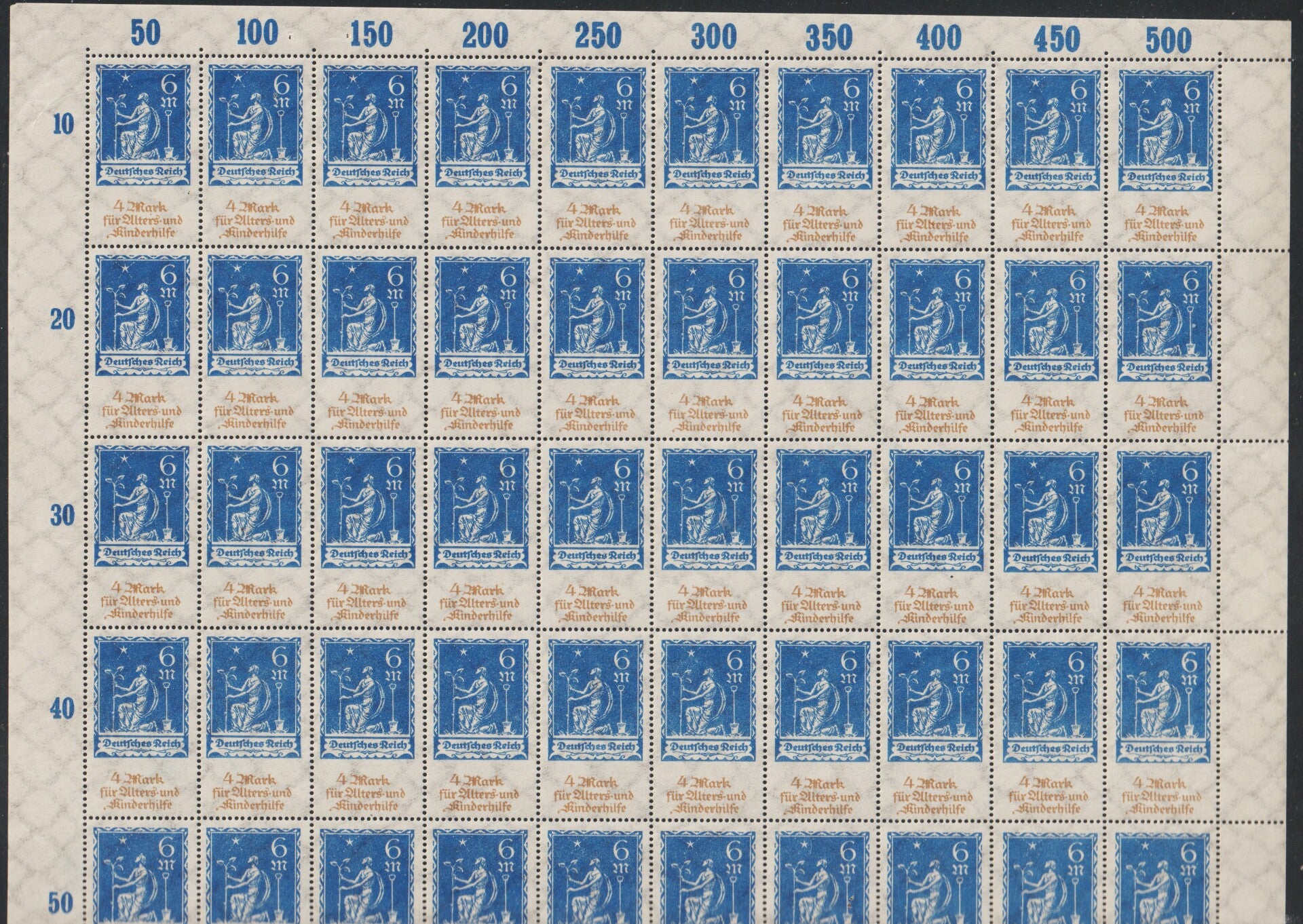 MiNr. 233 postfrischer ** Bogen, Plattenfehler I, IV, Katalogpreis: 195,00 €