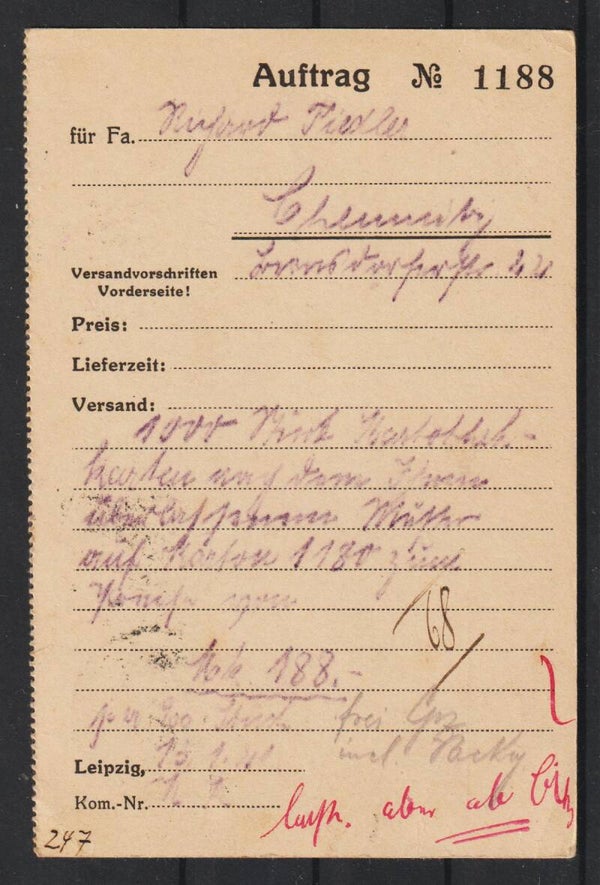 MiNr. 110 portogerechte Privat Postkarte vom 13.1.21 der Firma "Oswald Weber Drahtwarenfabrik Leipzig-Plagwitz"