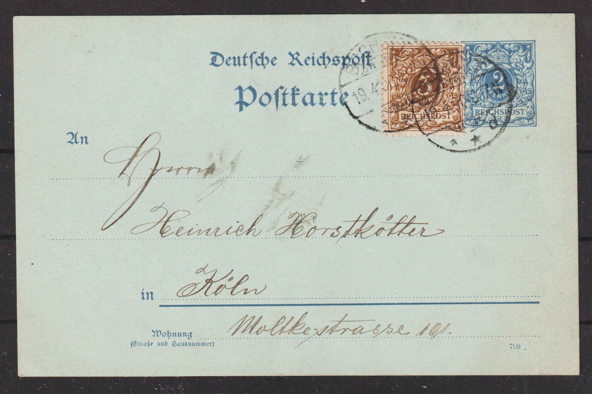 Ganzsache P 40, ZuF MiNr. 45 von BOCHOLT 19.4.00 nach Köln
