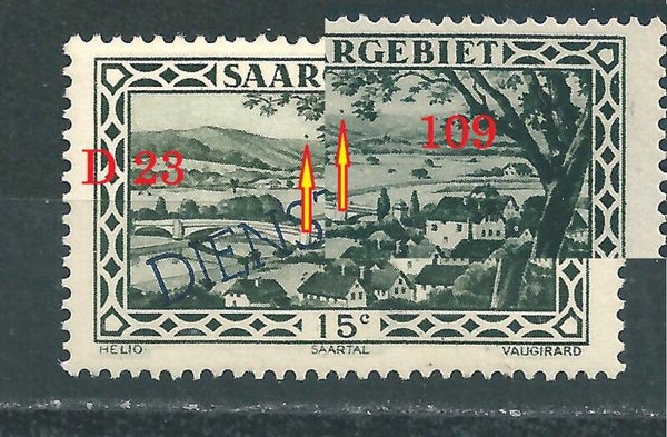Saar MiNr. 109 postfrisch, Abart: Ballon über Hügel - FSA 71/72 (wie D 23, siehe Bilder), Katalogpreis: 30,00 €