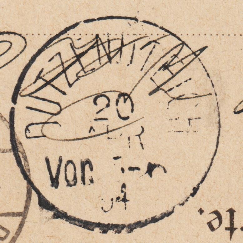 MiNr. 39 auf Postkarte mit Zudruck der Firma “Stöck & Fischer” aus Bingenbrück a. Rhein, perfins Firmenlochung S&F