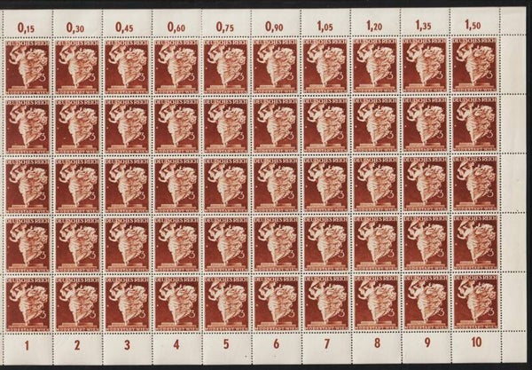 MiNr. 768 postfrischer Bogen, Abart: Rakel über Feld 30, 40, 50