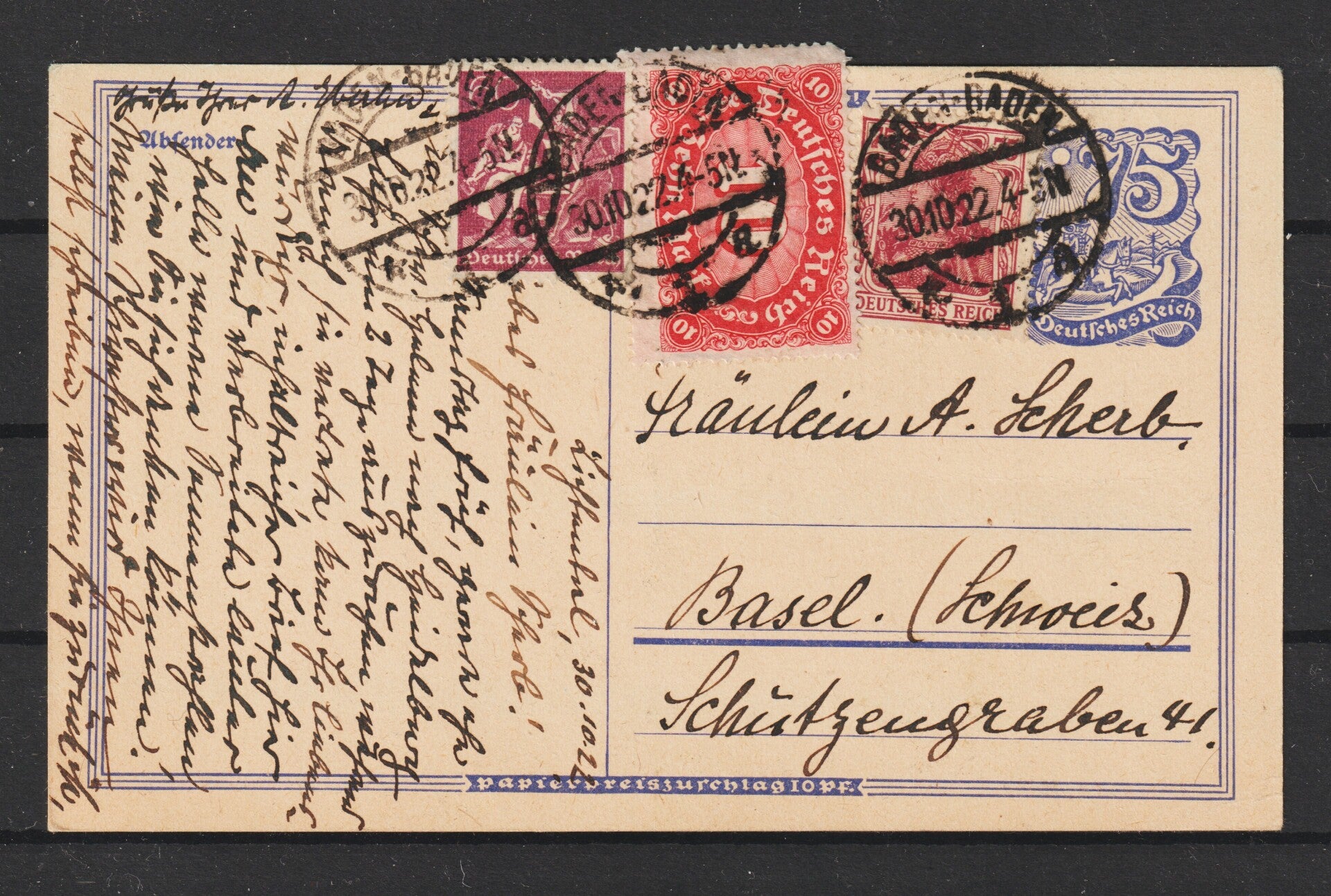 Ganzsachen Karte P 146 mit 3 Mark portogerecht im Fernverkehr in der Portoperiode 9 (1.10.-14.11.22) vom 30.10.22