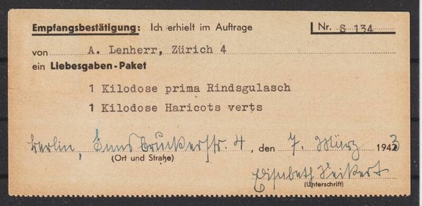 Empfangsbescheinigung über ein Liebesgaben-Paket vom 9.3.43 (b719)