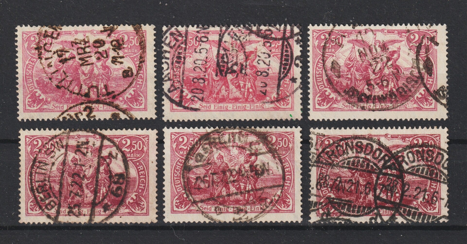 MiNr. 115 a,b,c,d,e,f gestempelt, geprüft, Katalogpreis: 288,50 €