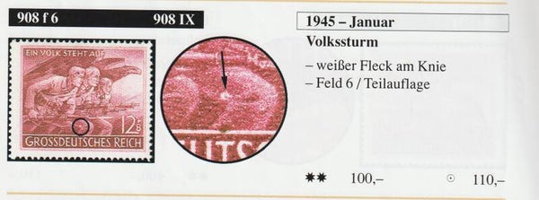 MiNr. 908 postfrisch, Plattenfehler IX (f6): Fleck am Knie, geprüft
