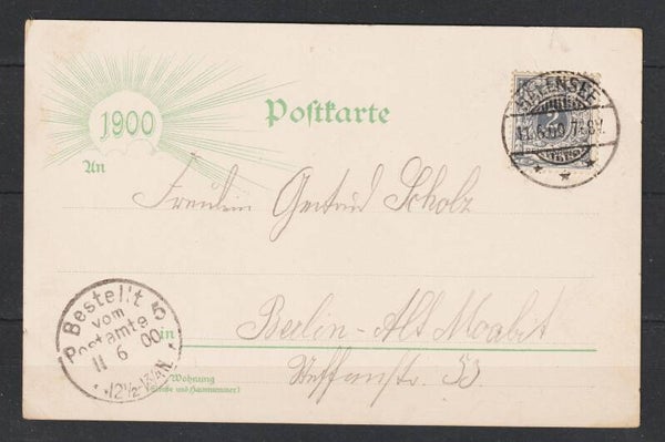 MiNr. 52 Einzelfrankatur auf seltener Litho Postkarte "Gruss vom Wirtshaus am Halensee" in Berlin, HALENSEE 11.6.00