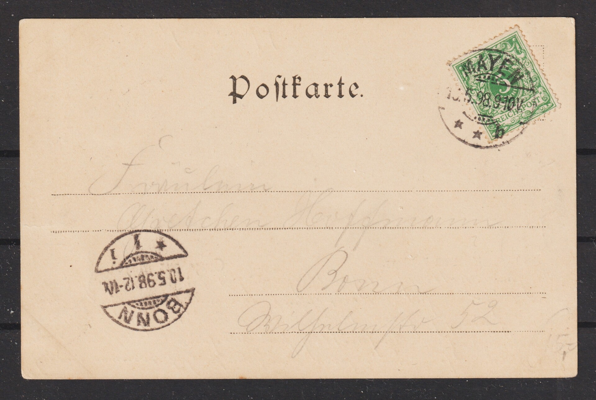 MiNr. 46 Einzelfrankatur auf Litho Ansichtskarte "Gruß aus Mayen" vom 10.5.98 nach Bonn