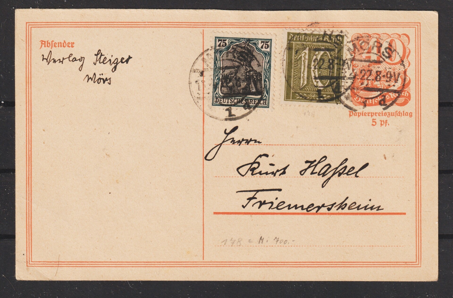 Ganzsache P 141 mit ZuF, MÖRS 11.4.22 (s23134)