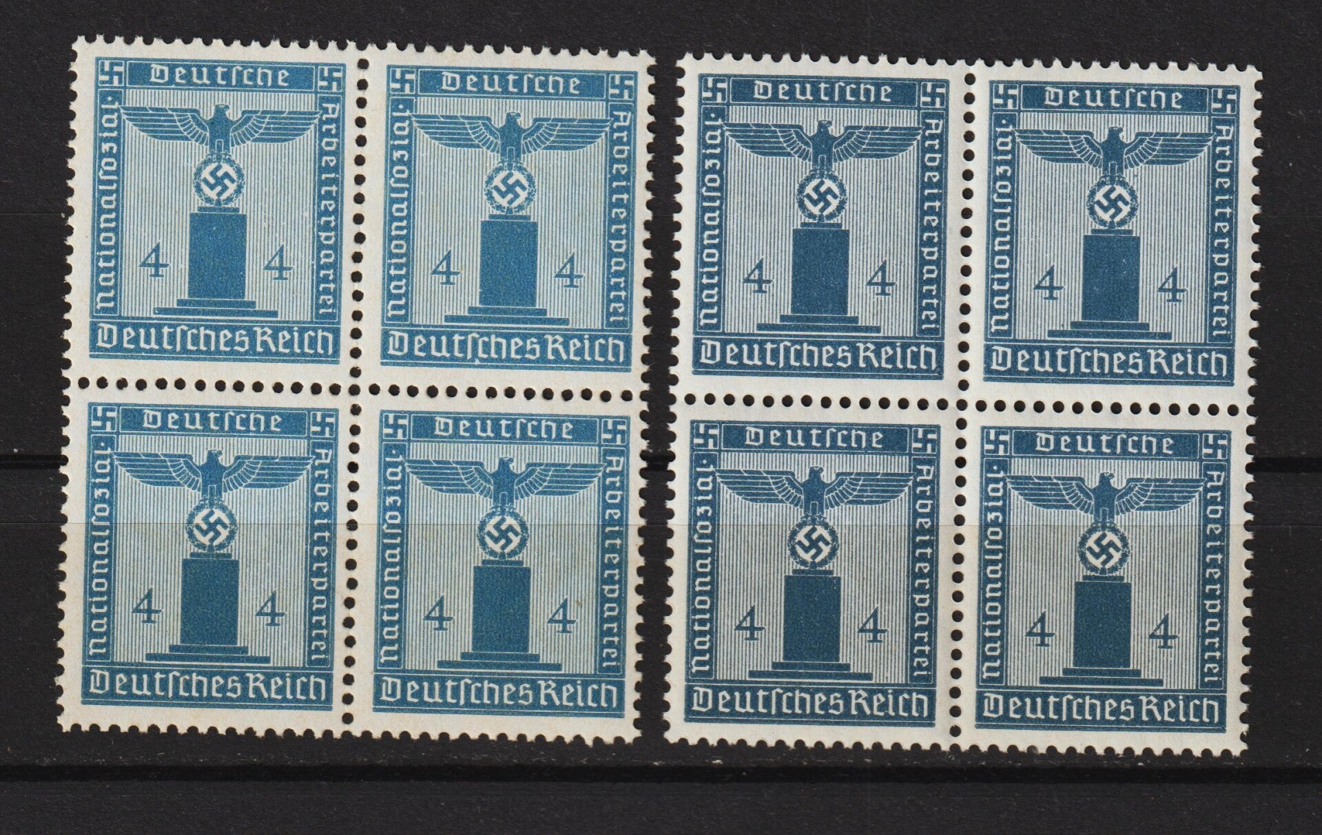 MiNr. D 146 postfrische Viererblöcke in verschiedenen Farben, Katalogpreis: 72,00 € +