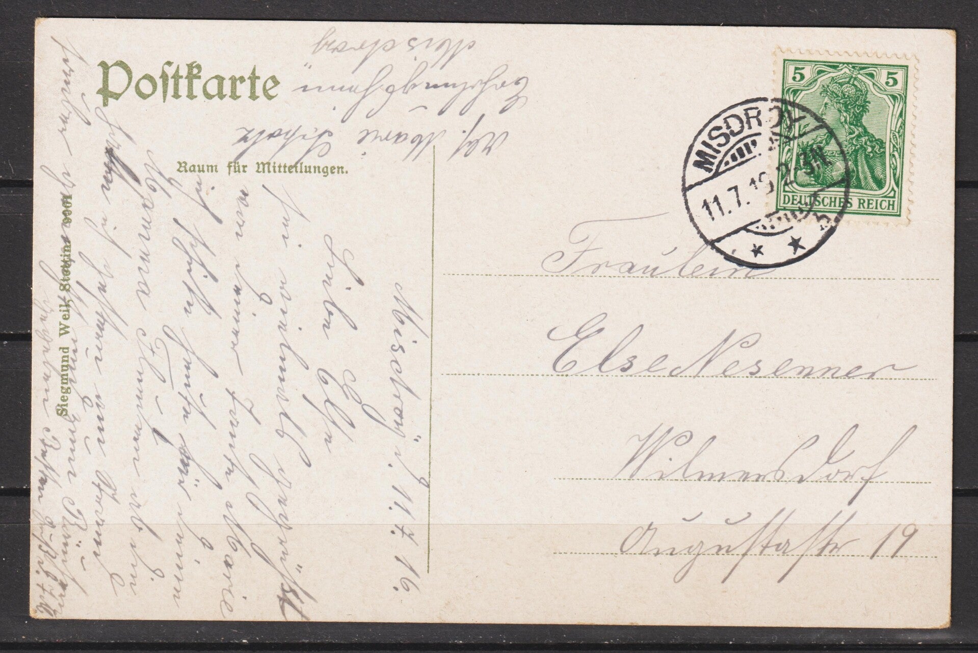 MiNr. 85 auf Ansichtskarte: “Ostsee-Bad Misdroy” vom 11.7.16