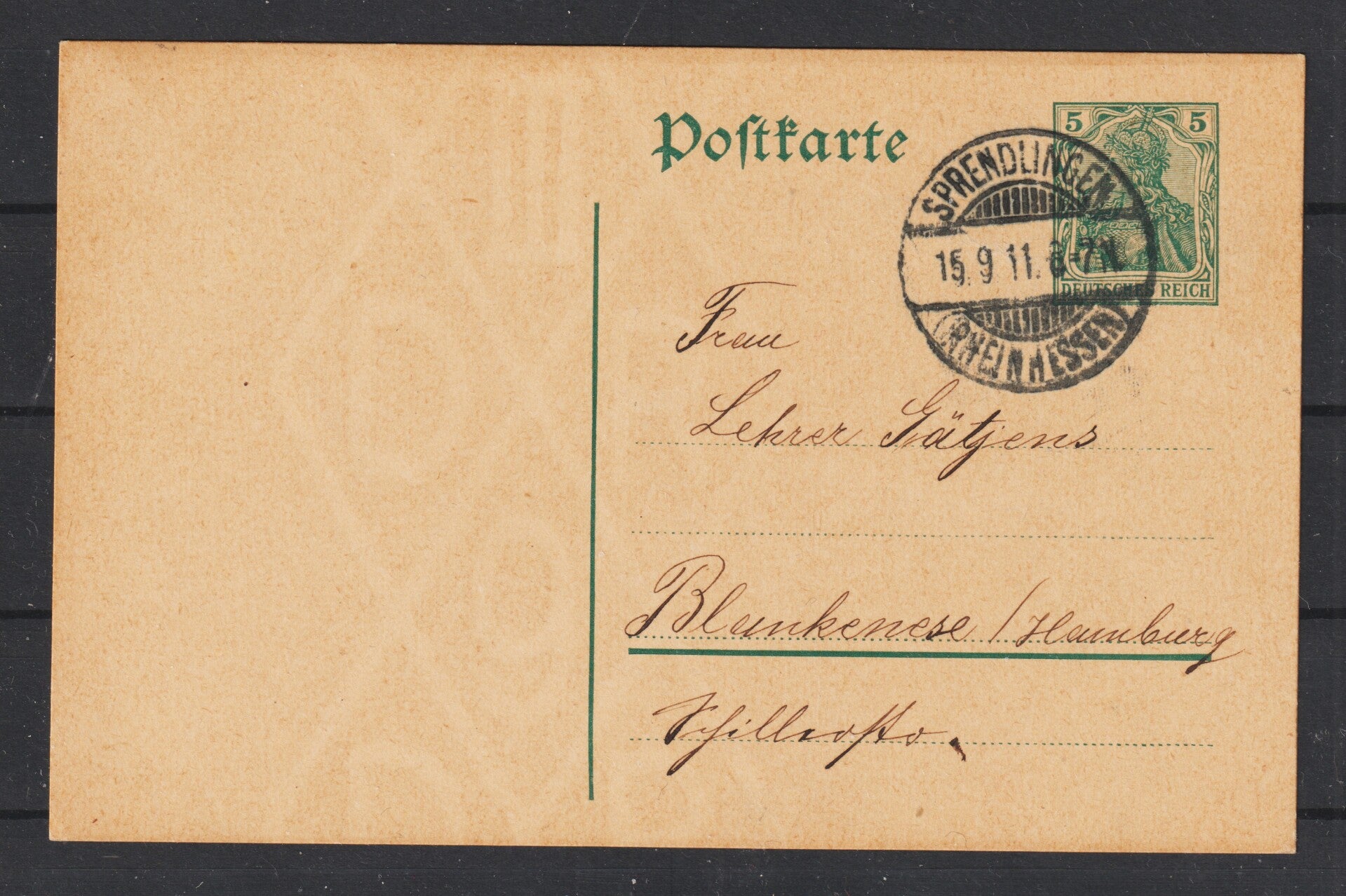 Ganzsache P 90 SPRENDLINGEN 15.9.11