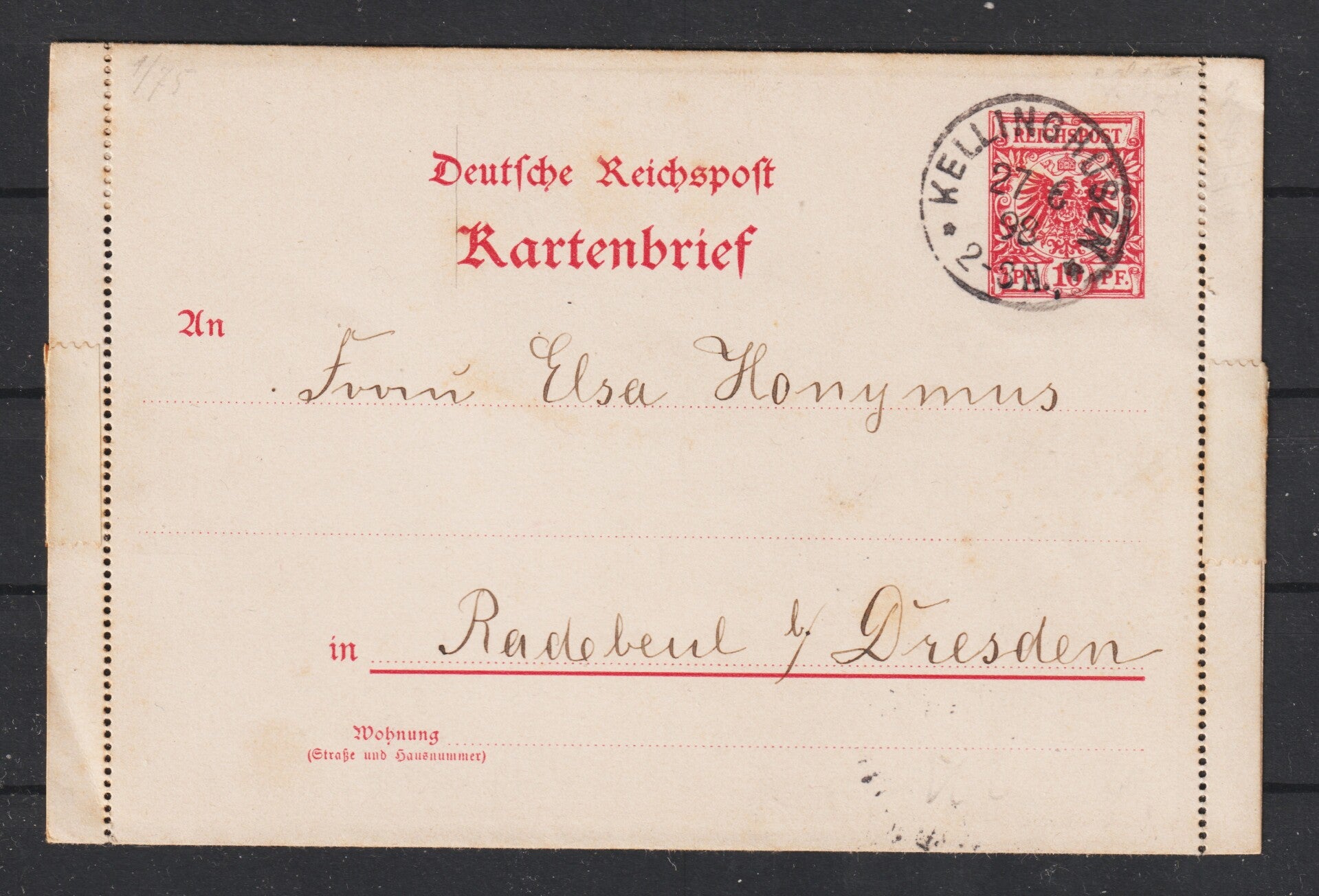 Kartenbrief K 2, von KELLINGHUSEN 27.6.98 nach OBERLÖSSNITZ 28.6.98