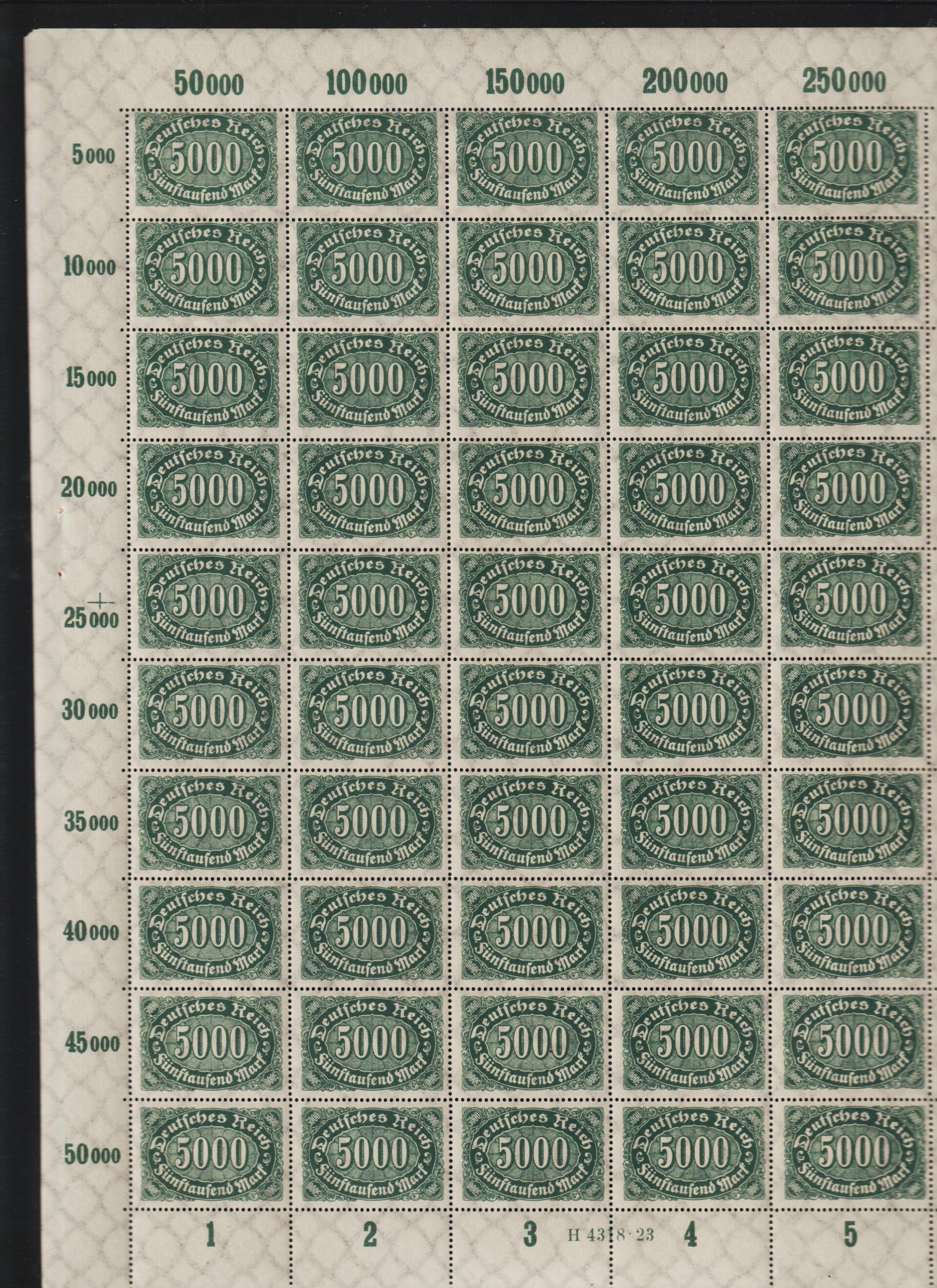 MiNr. 255 postfrischer Bogen, Plattenfehler II, sowie f14, f41