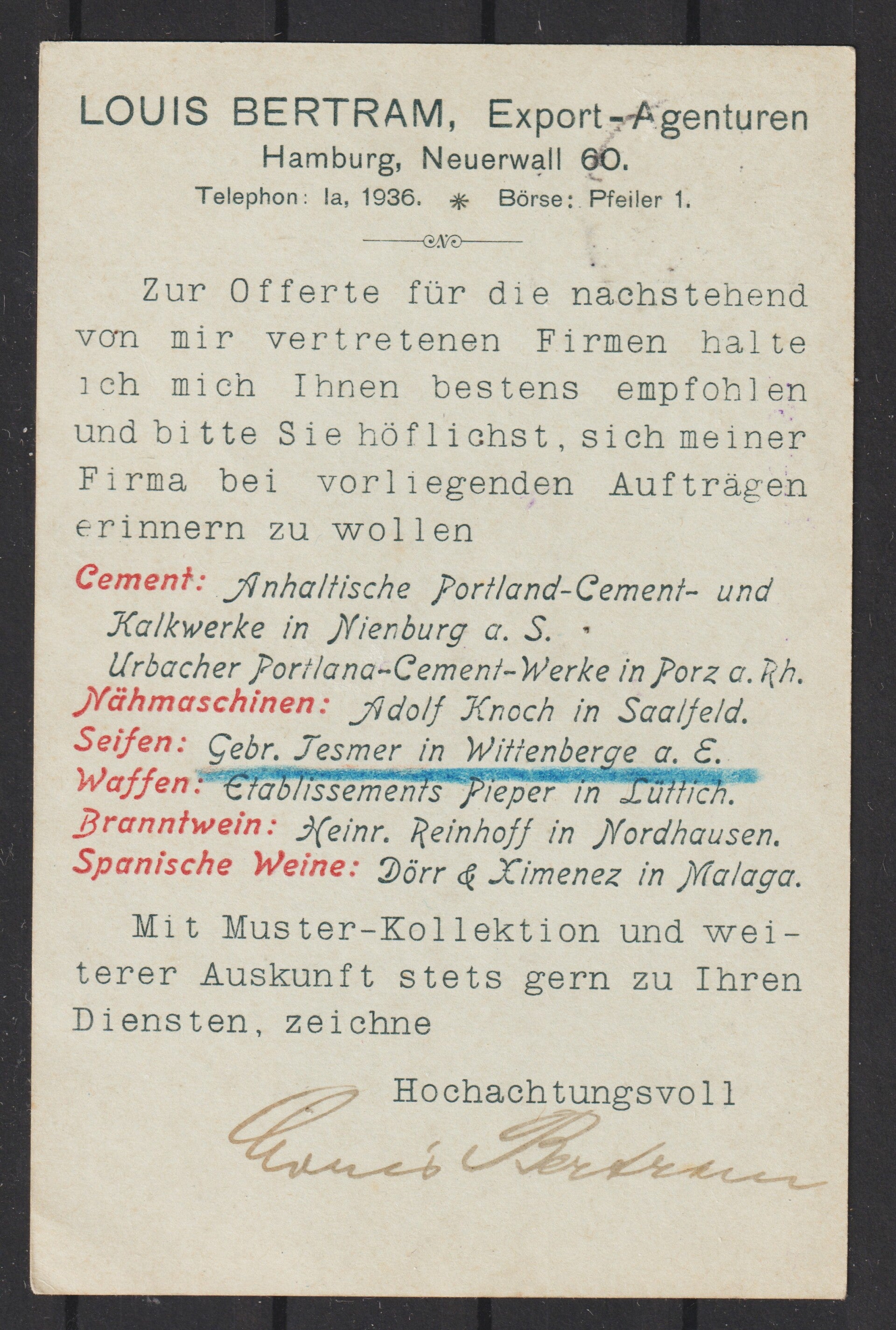 Privat Ganzsache PP "Luis Bertram Export-Agenturen"