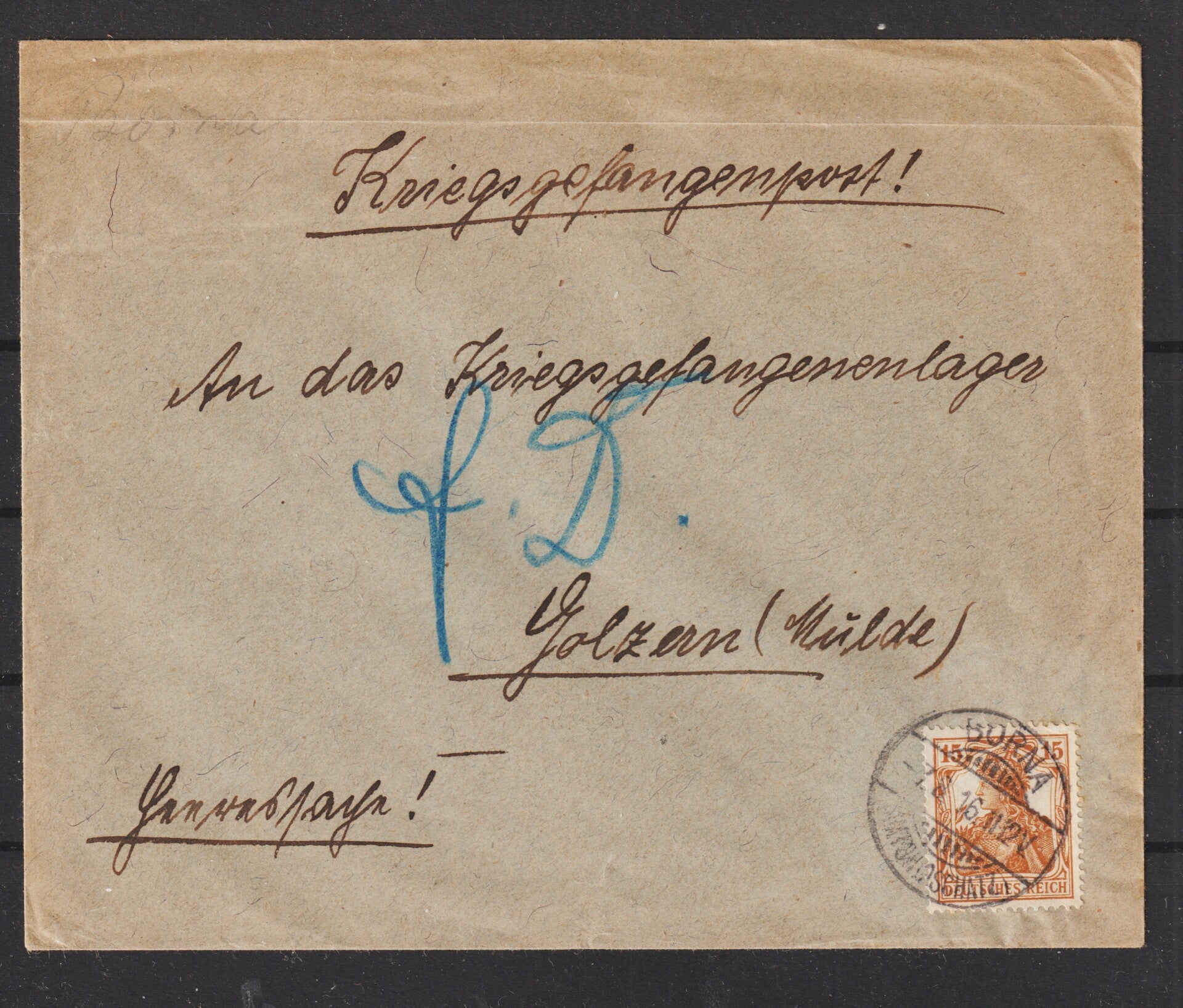 Kriegsgefangenenpost an das Kriegsgefangenenlager Golzern vom 7.8.16