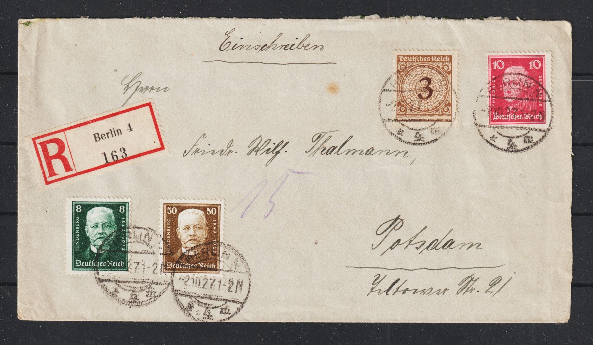 MiNr. 406 MiF auf R-Brief BERLIN 2.10.27 nach Potsdam