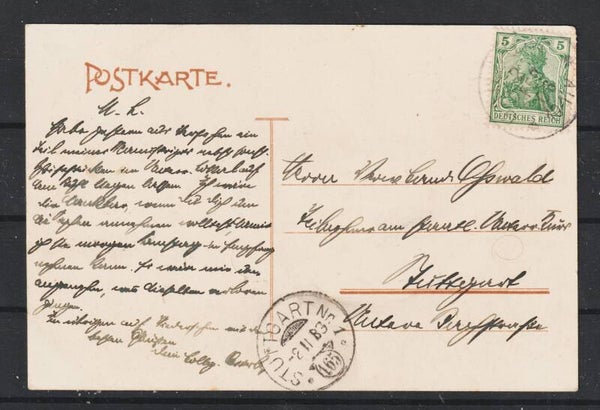 Postkarte "Verwaltungskurs 1905-06, Ministerium des Inneren", GAILDORF 2.FEB.06 nach Stuttgart