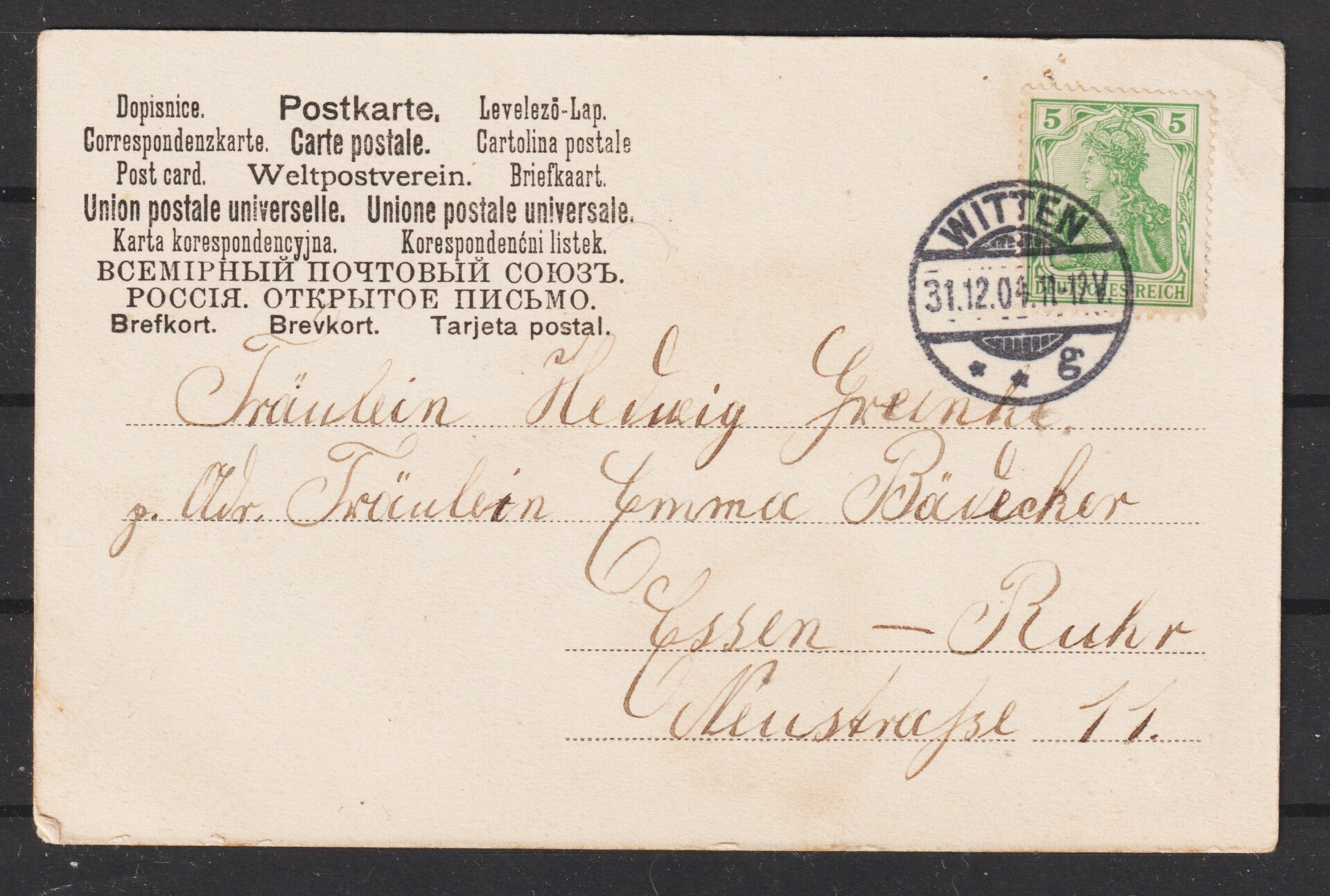 MiNr. 70 auf Neujahrs-Karte, sauberer Stempel WITTEN 31.12.04