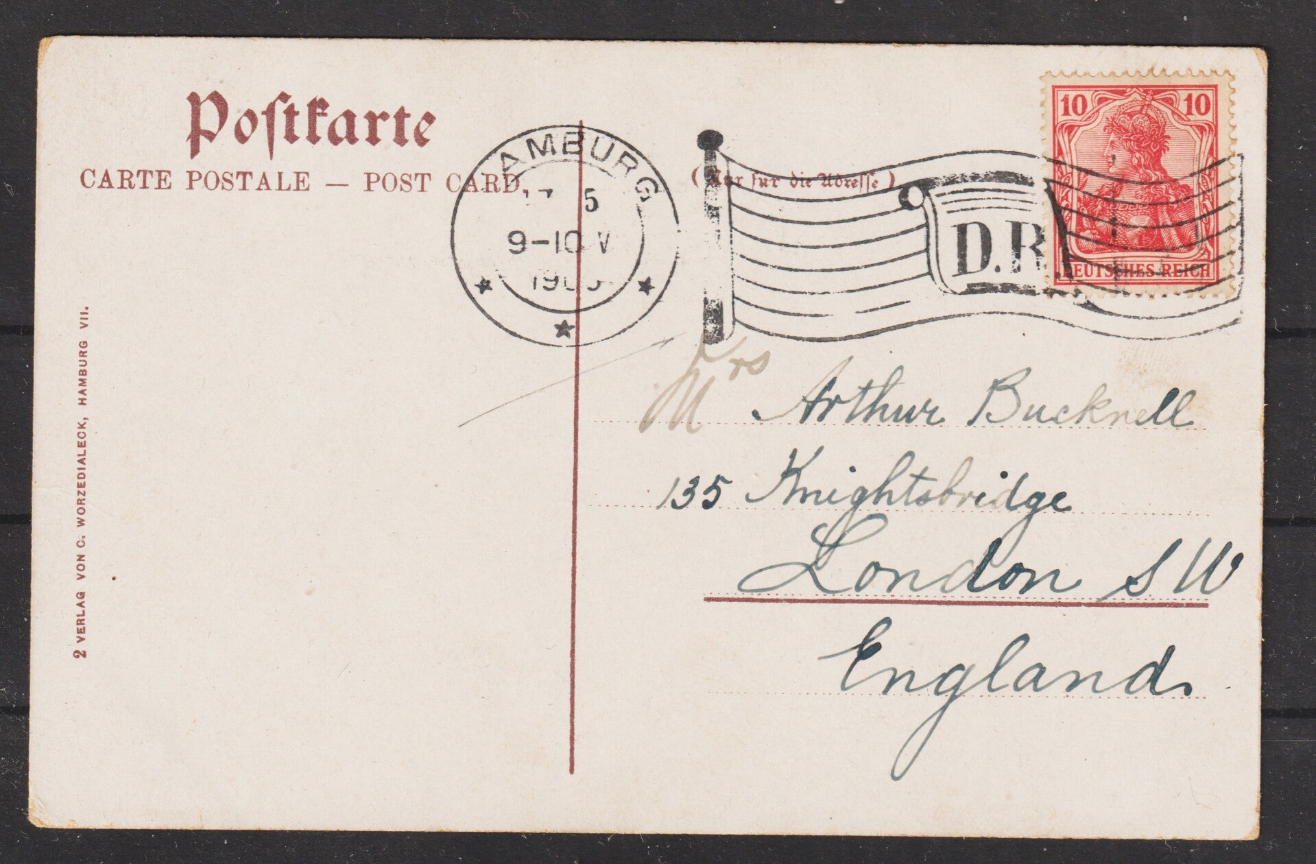 Ansichtskarte, Flaggenstempel HAMBURG 17.5.06 (b102)