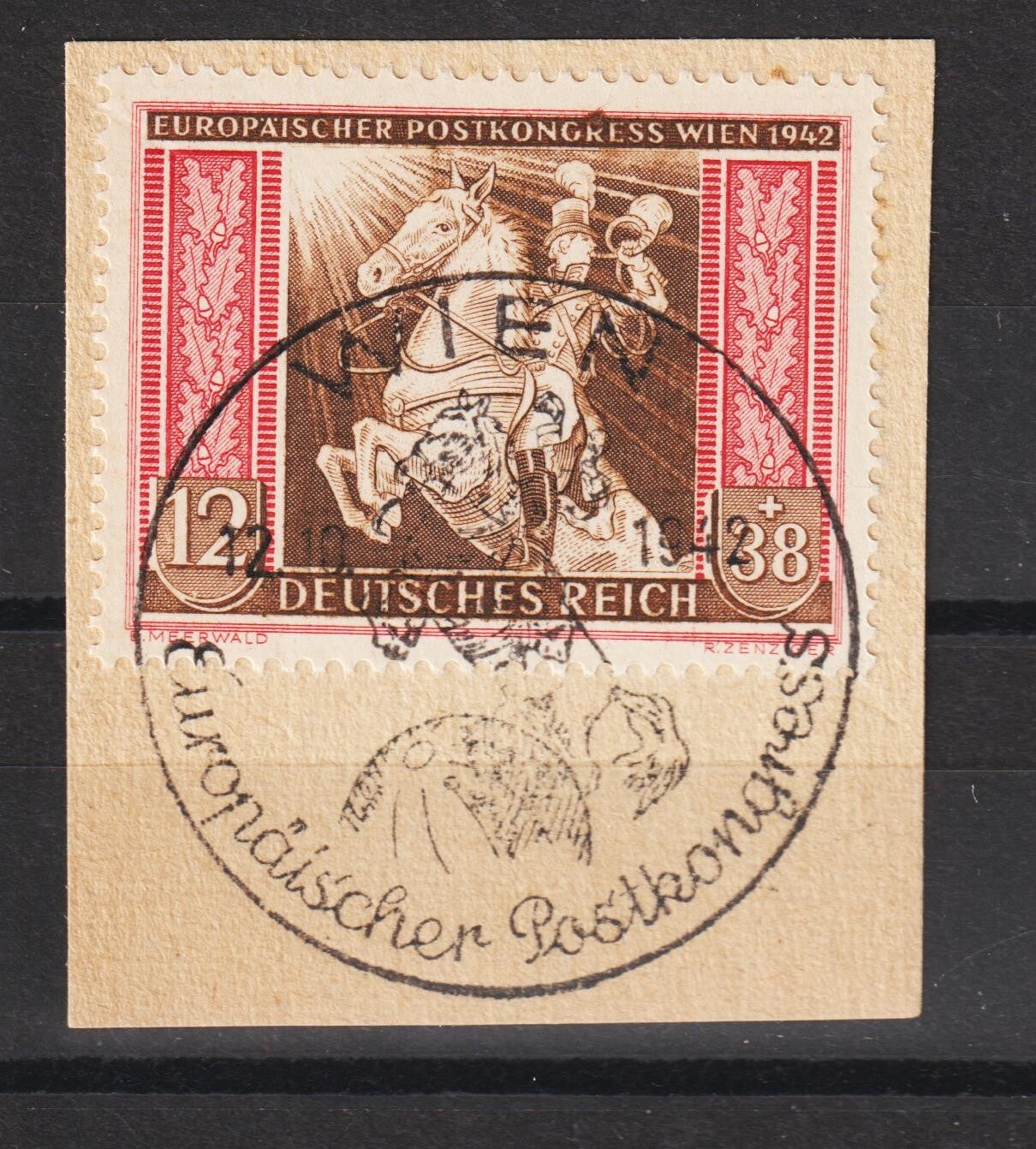 MiNr. 822 gestempelt, Abart: dicker Farbfleck oben im Rahmen über GR von POSTKONGRESS